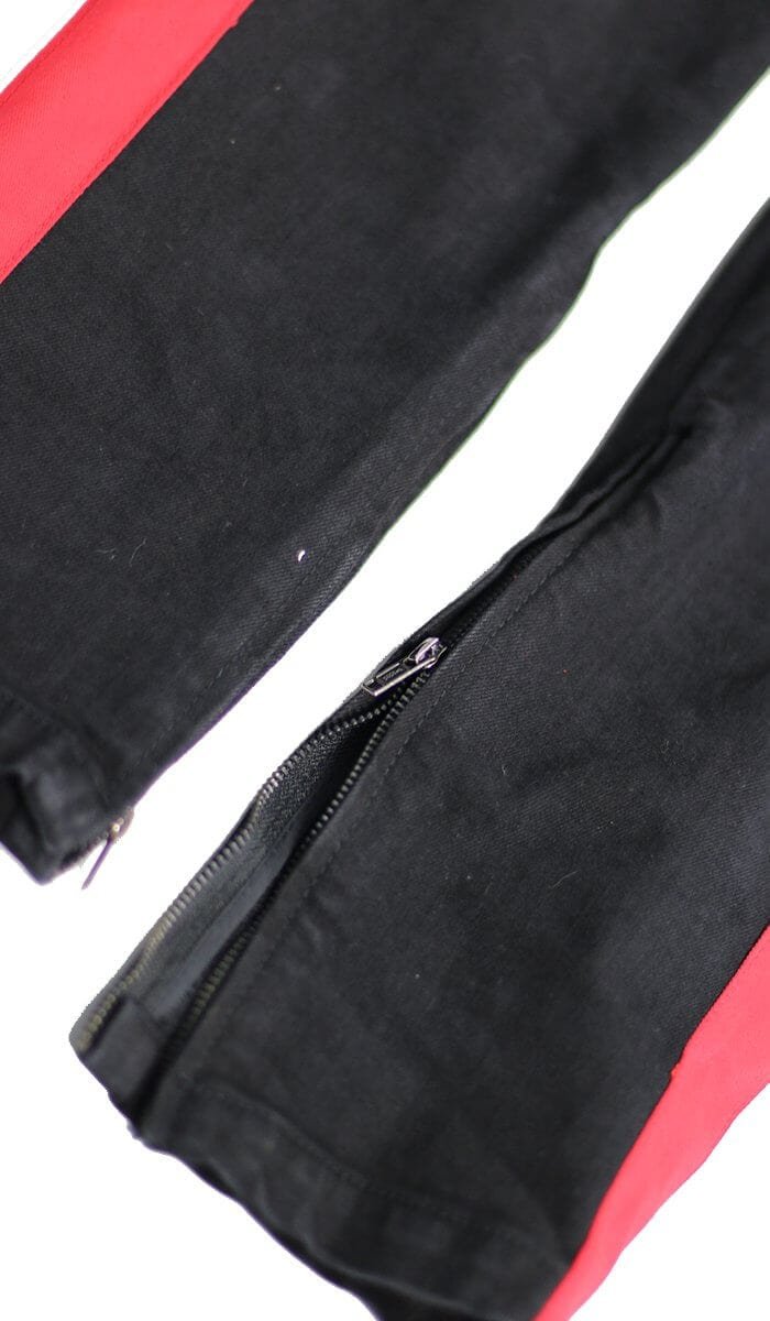 - Skinny?tapered leg silhouette