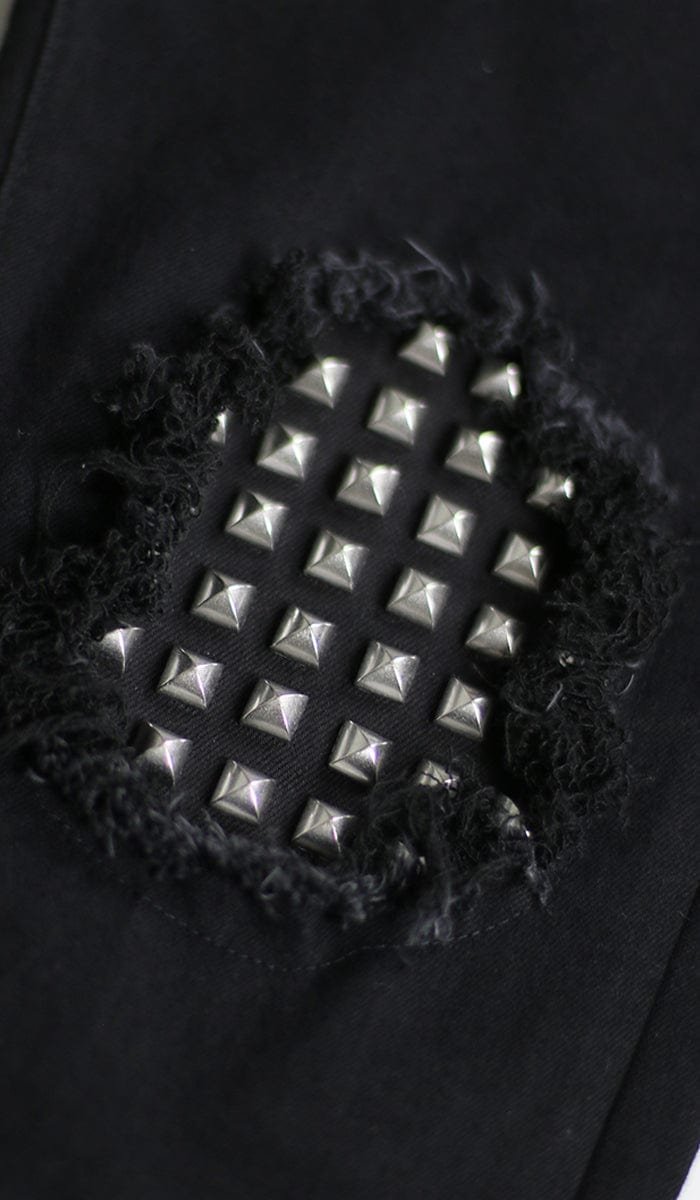 The artful arrangement of?stud and rips presents a harmonious juxtaposition between rebellion and sophistication. Infused with a rebellious spirit, the strategic rips and distressing add character and attitude to the jeans.