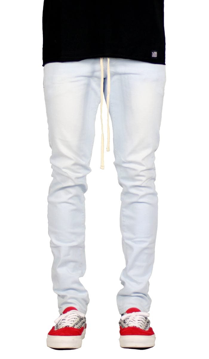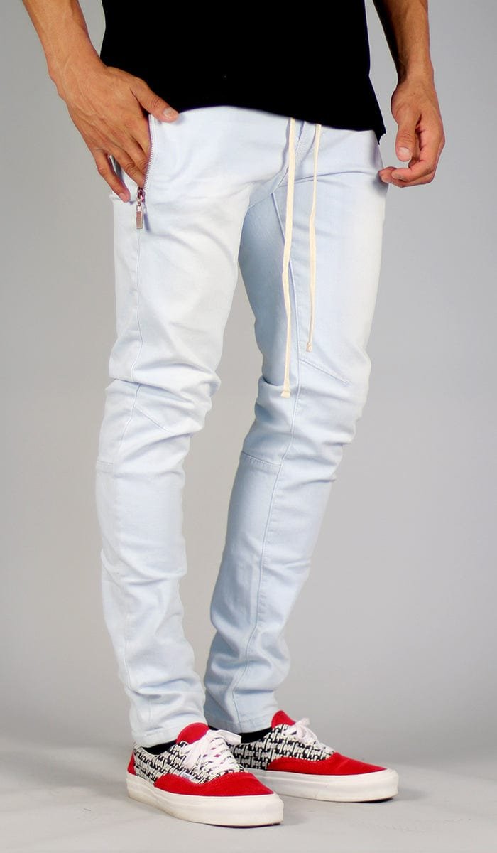 - Skinny?tapered leg silhouette
