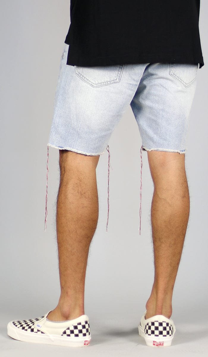 Model is 6’2″ tall 170 lbs, wears size 32″. Sneaker is Vans Checkerboard OG Classic.